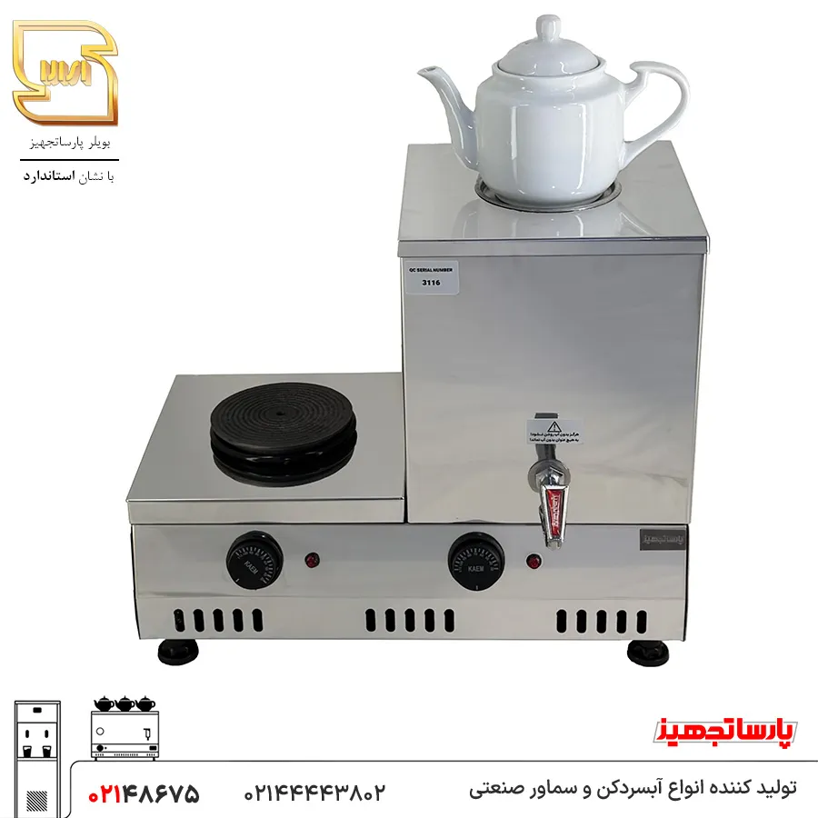 1. یک بویلر آب جوش با حجم 15 لیتر با یک عدد جای قوری برای دم آوری چای