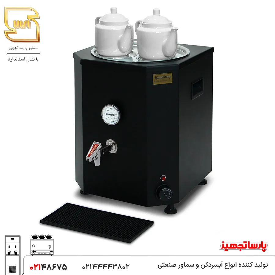 سماور 20 لیتری مشکی پارساتجهیز با 12 ماه گارانتی و 10 سال خدمات پس از فروش از درب کارخانه عرضه می شود. برای خرید محصول سفارش خود را ثبت آنلاین کنید یا با کارشناسان فروش پارساتجهیز تماس حاصل فرمایید.