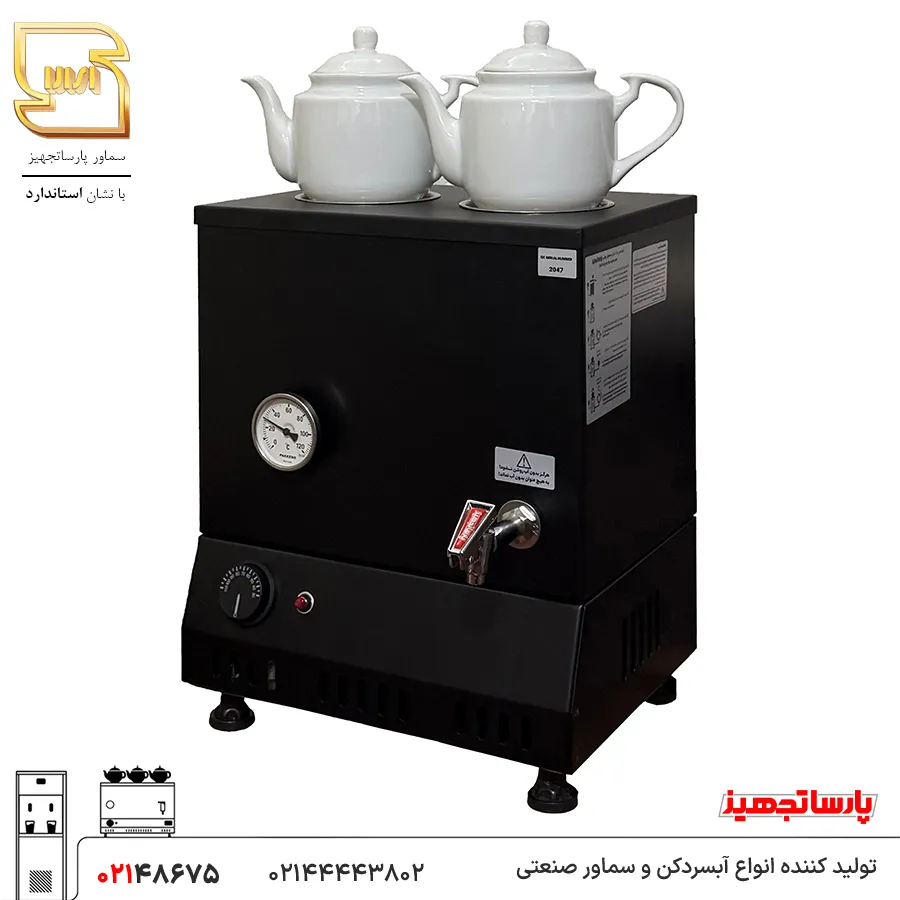 سماور برقی 20 لیتری مشکی پارساتجهیز با رنگ مشکی جلوه ای متفاوت، لوکس و چشمگیر به دست آورده است. رنگ مشکی جلوه ای شکیل به محیط تجاری شما می بخشد. کافه ها، رستوران ها، هتلها، یا مکان های دیگر بر حسب سلیقه خود می توانند برای خرید سماور برقی 20 لیتری رنگ مشکی را انتخاب کنند. جنس سماور این سماور مانند دیگر محصولات پارساتجهیز استیل 304 نگیر و ضدزنگ میباشد. این سماور از درب کارخانه با گارانتی 12 ماهه و 10 سال خدمات پس از فروش به مشتریان تقدیم می شود.